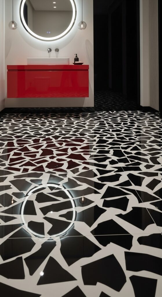 Floors are the ultimate canvas for bold designs. An abstract patterned tile floor, using irregular shapes or stylized botanical prints, can visually expand a small powder room. The key is to keep the pattern slightly asymmetrical to create visual “movement.” This trend is incredibly practical, as complex patterns are excellent at hiding dust and small mess between cleanings. It’s a dramatic, high-energy statement that instantly wows guests.