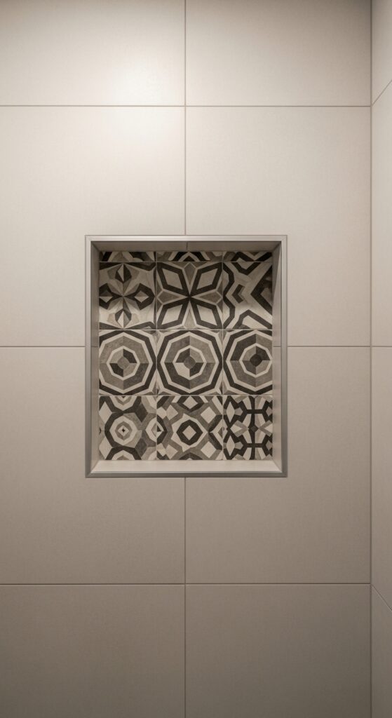 Even the smallest spaces offer design opportunities. Tiling an inset shower nook or window sill in a complex, contrasting geometric pattern is a favorite tactic for 2026. This “surprise” element adds depth and a sense of discovery to the room. It’s a practical and affordable way to use leftovers from a main tile pattern or to experiment with a “riskier” design without overwhelming the entire space.