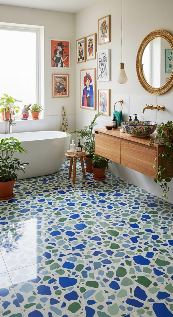 Your bathroom is your ultimate “reset button.” A bland, uninspired space can subconsciously affect your mood, making mornings feel more routine and evenings less relaxing. By adopting bold, playful tiles and vanities, you are investing in a daily dose of happiness. These trends offer an easy way to make a big impact, turning a small utilitarian room into a memorable, photogenic sanctuary that promotes energy, creativity, and well-being. It’s about creating a home that isn’t just lived-in, but is alive with color.