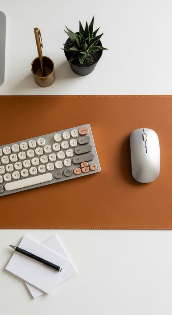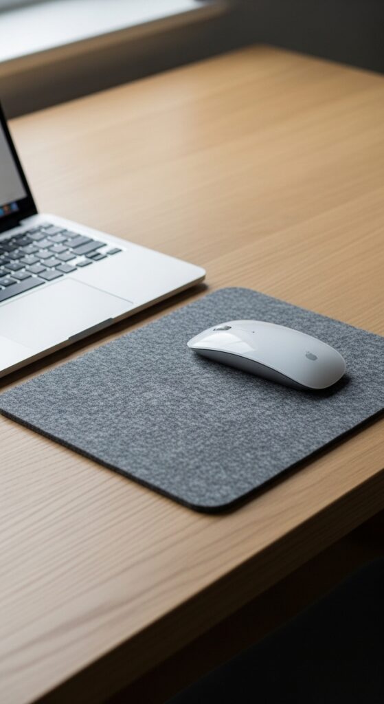 Swap your standard plastic mouse pad for a felt or fabric one. The tactile sensation of wool felt under your hand is surprisingly calming. It absorbs sound better than plastic, making your mouse clicks feel quieter and more satisfying. In a Pinterest-worthy office, these small texture changes are what separate a “basic” desk from a “cozy” one.