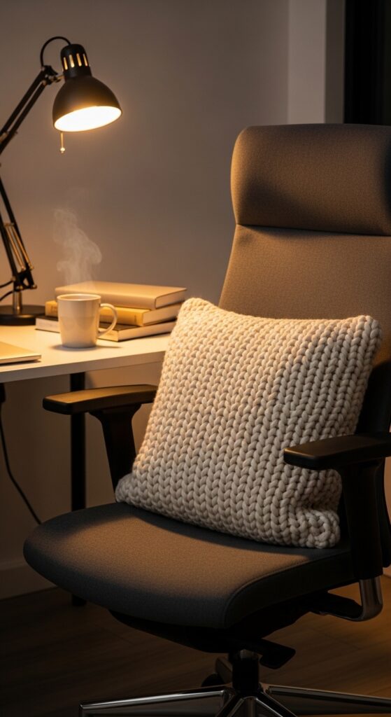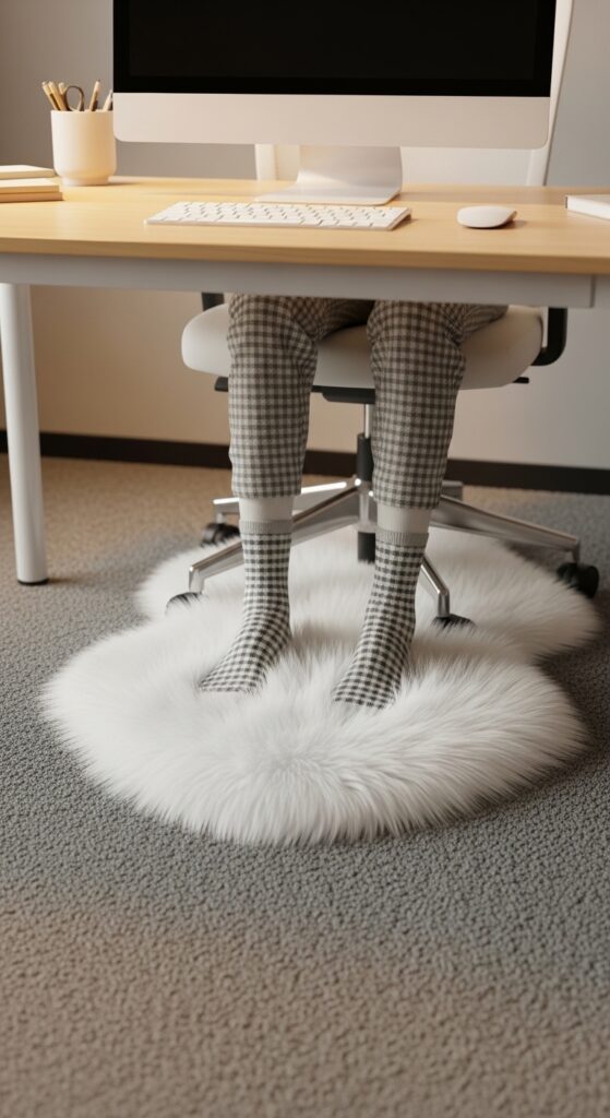 If your office allows it, a small faux-fur or low-pile rug placed under your desk where your feet sit is the ultimate luxury. It cushions your feet and hides the ugly office carpet. Every time you push back your chair, you’ll feel that soft texture, which serves as a constant reminder that your comfort matters. It’s an “under-the-radar” hack for total office comfort.
