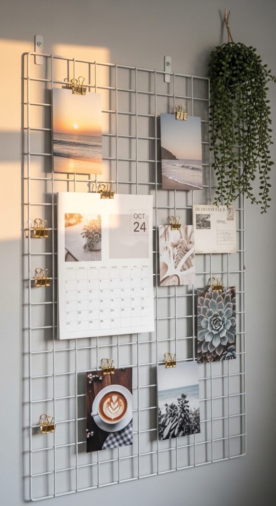 A gold or white wire grid wall is perfect for clipping up to-do lists, calendars, and a few aesthetic postcards. It keeps your desktop clear of paper clutter while utilizing the vertical space of the cubicle walls. It looks modern, professional, and allows you to change your decor seasonally without any effort. It’s the perfect blend of productivity and style.