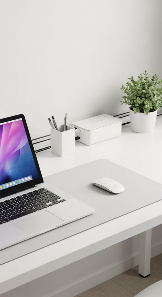 Cables are the ultimate “cozy” killer. Use leather cable wraps or a sleek white cable box to hide the tangled mess behind your computer. When the lines of your desk are clean and cord-free, your mind feels less cluttered. It’s a small detail that has a massive impact on the overall “clean-girl” or “minimalist-tech” aesthetic that is currently trending.