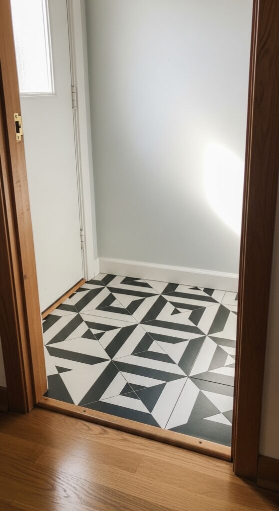 If your bedroom has a small attached vanity or entryway with dated tiles, floor decals are a miracle. These are thick, waterproof vinyl stickers that mimic expensive Moroccan or Mediterranean tiles. You simply clean your existing floor and stick them on. They are durable enough for daily walking but can be peeled up in minutes when you leave. This is one of those “wow” factors that guests will never believe is temporary.