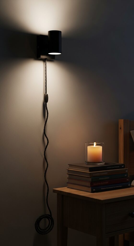 Hard-wiring new lights is usually a “no-go” for renters, but plug-in sconces offer the same sophisticated look. These fixtures mount to the wall with small nails or adhesive strips and have a decorative cord that plugs into a standard outlet. Placing a matching pair on either side of your bed creates a balanced, high-end hotel vibe. Use cord covers that match your wall color to hide the wires and create a seamless, built-in appearance.