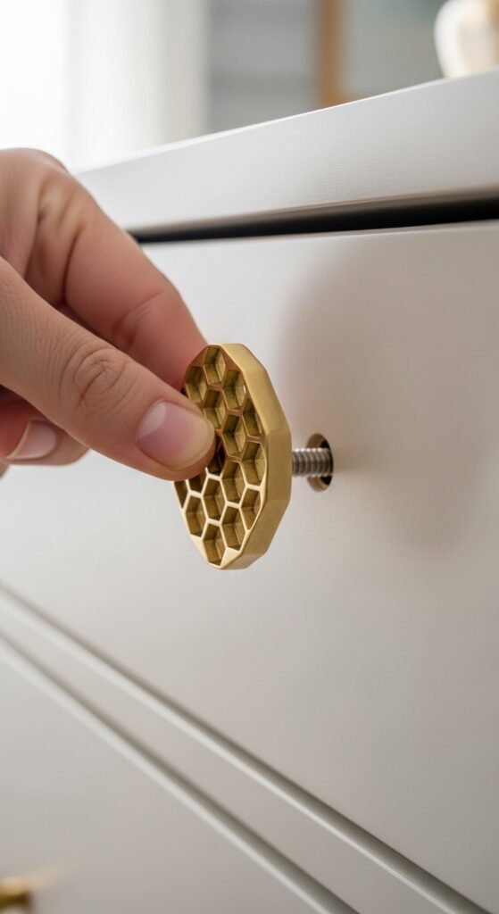 Your rental might come with a basic built-in closet or old-fashioned dresser. A subtle but powerful hack is to unscrew the existing generic handles and replace them with something stylish—think brushed brass, matte black, or even colorful ceramic knobs. This small change makes “cheap” furniture look like custom-made pieces. Just remember to keep the original hardware in a labeled bag so you can swap them back before you move out.