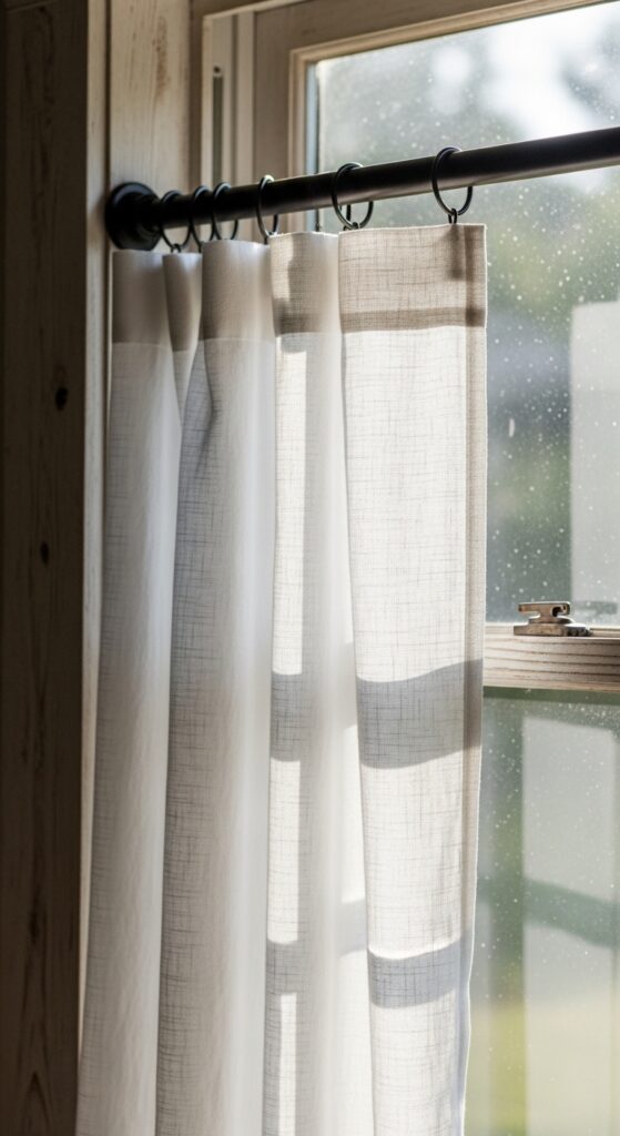 Standard rental blinds are often ugly and functional at best. You can hide them completely by installing a tension rod inside the window frame. This requires zero drilling and allows you to hang soft, airy sheer curtains or heavy velvet drapes. Layering your window treatments adds a sense of luxury and “depth” to the room, making the windows appear larger and the ceilings higher. It’s a soft touch that instantly warms up a cold, clinical rental room.