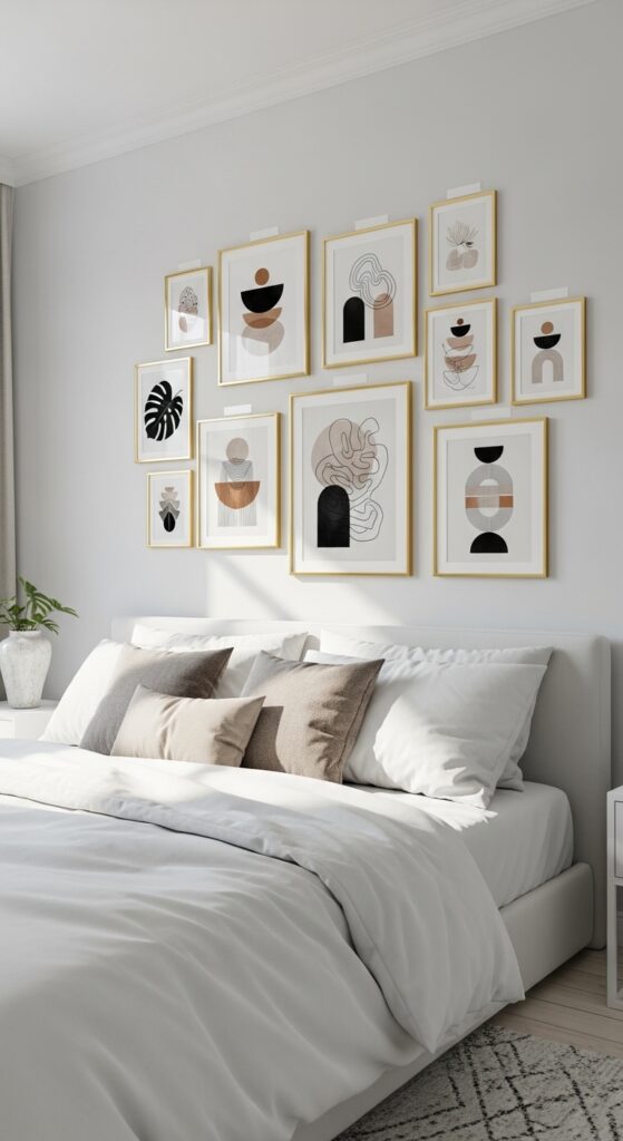 Gone are the days of choosing between art and your security deposit. Using heavy-duty adhesive Command strips, you can curate a massive gallery wall featuring various frame sizes, mirrors, and even lightweight wall sculptures. To make it look aesthetic, try mixing personal black-and-white photos with abstract art prints. The secret to a “Pinterest-perfect” gallery is maintaining a consistent color theme among the frames, such as all-gold or all-matte-black, to create a unified and expensive look.