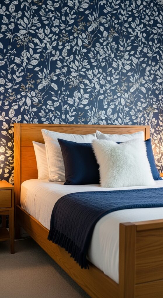 The ultimate game-changer for any renter is removable wallpaper. Modern “peel-and-stick” options come in high-end textures like linen, wood plank, or intricate floral patterns. Applying a bold, botanical print behind your headboard creates an instant focal point that draws the eye and defines the room’s color palette. The best part? When it’s time to move, it peels off like a giant sticker, leaving the original paint perfectly intact. It’s a high-impact move that makes your bedroom look professionally designed.