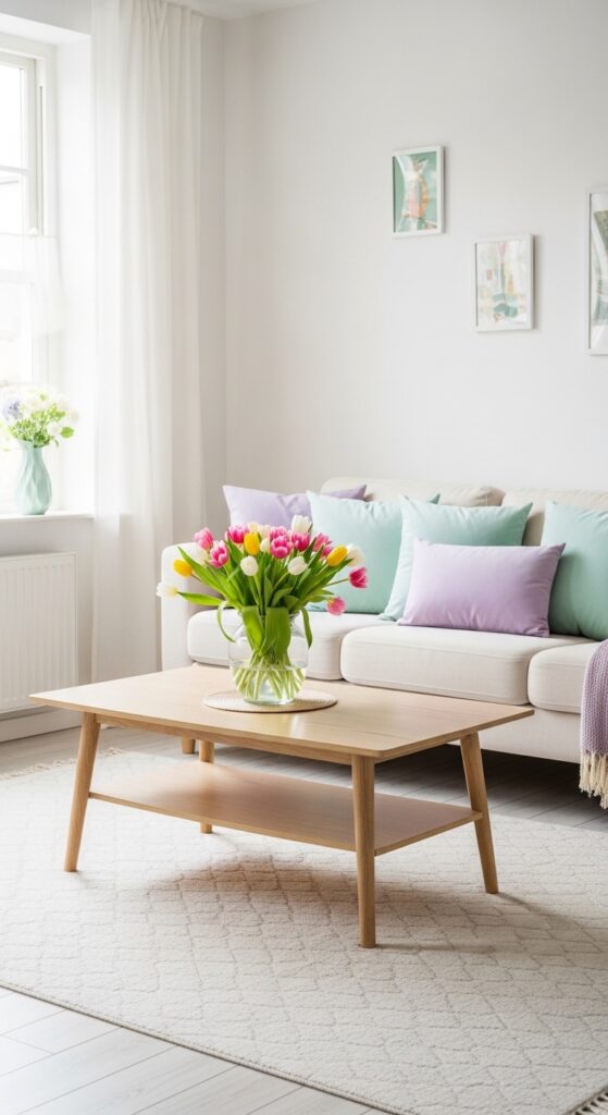 When thinking of Easter, soft pastels are the first thing that come to mind. To keep it modern, blend mint greens, soft lavender, and blush pinks with neutral whites or light wood textures. This combination creates a sophisticated yet festive look that doesn’t feel overwhelming. Use these colors in your throw pillows, thin blankets, or even a simple vase of tulips. For Pinterest-worthy visuals, imagine a cream-colored sofa adorned with soft lemon-yellow cushions, reflecting the morning sun. This approach ensures your decor remains cohesive while celebrating the lightheartedness of the spring season.