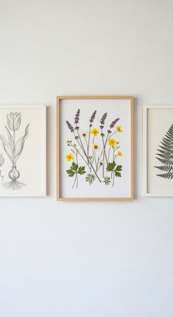 Swap out a few of your standard art pieces for spring-inspired prints. You don’t need to buy expensive art; even botanical sketches or framed pieces of floral wallpaper can work wonders. This temporary change shifts the entire energy of a room. Imagine a wall featuring three simple frames with pressed dried flowers or minimalist sketches of baby chicks and blossoms. This creates a dedicated “Easter corner” in your home that serves as a perfect backdrop for family photos, adding depth and a sense of seasonality to your interior design.
