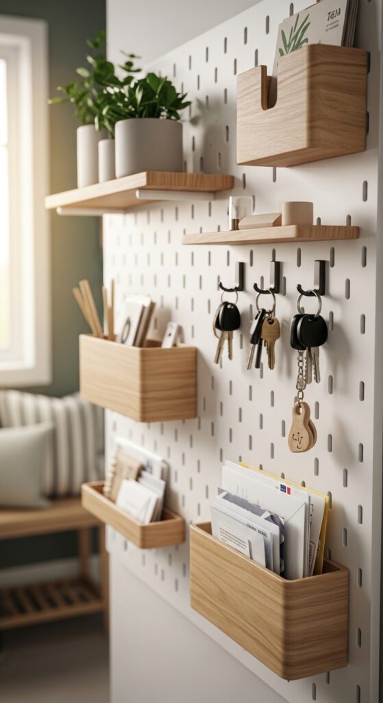No mudroom is complete without a place for the “little essentials.” The Skadis pegboard is the ultimate organization tool. Mount a large Skadis board on the wall next to your coat rack. Use the hooks for keys, the containers for pens and sunglasses, and the clips for important school notes. Picture a neatly organized board where everything has a specific spot. It’s visually satisfying and prevents that “where are my keys?” panic. You can even paint the pegboard to match your decor for a seamless look.