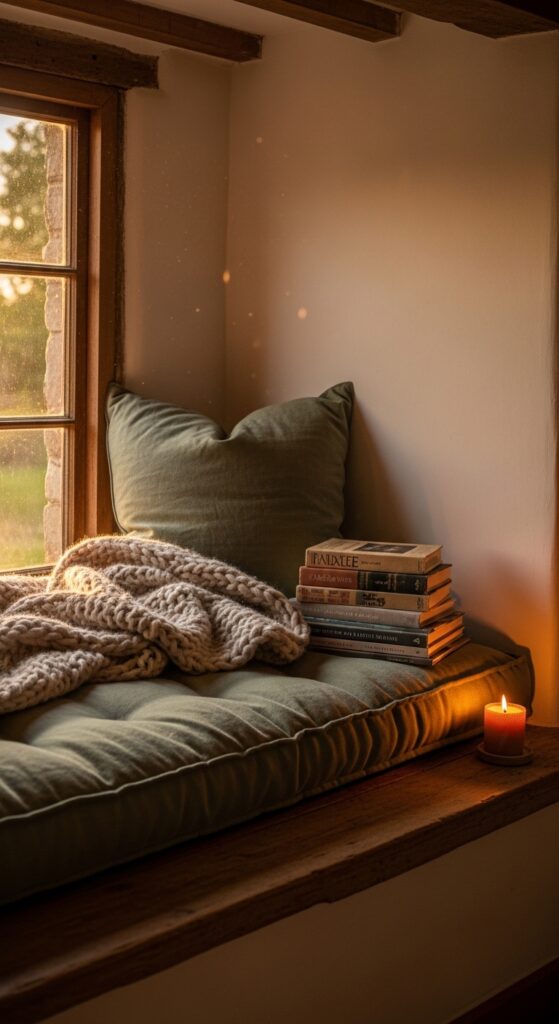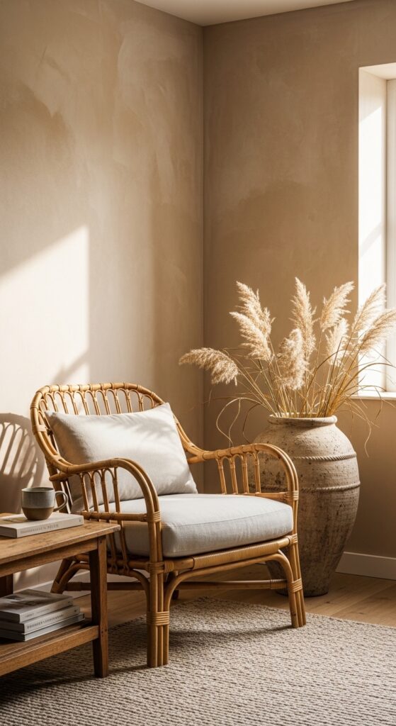 14. A Cozy Reading Nook with Natural Materials