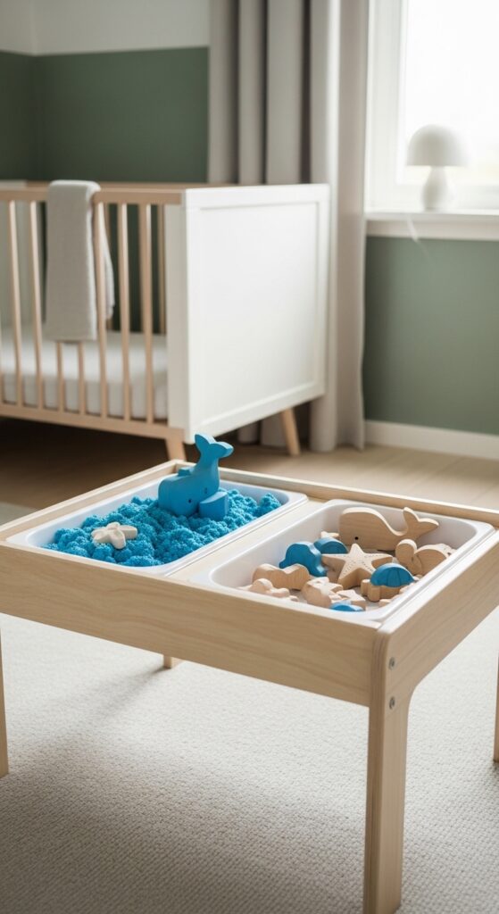 The Flisat table is a sensory seeker’s dream. With its removable top panels and Trofast bins underneath, it can switch from a drawing desk to a “messy play” station in seconds. Fill one bin with colored rice and the other with water or kinetic sand. It’s small enough to fit in the corner of a bedroom but powerful enough to keep a toddler occupied for hours. The light wood finish fits perfectly into any modern or Scandinavian home aesthetic.