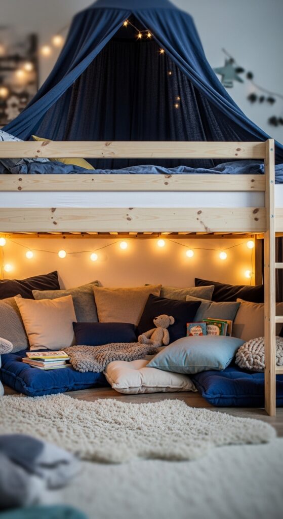 The Kura bed is the ultimate playroom centerpiece. Because it’s reversible, you can have the bed on the bottom and a “secret den” on top, or vice versa. Most parents put the bed on top and turn the bottom area into a cozy fort with curtains, fairy lights, and floor cushions. It’s a “room within a room” that provides a sense of privacy and adventure for kids who love to hide and imagine.