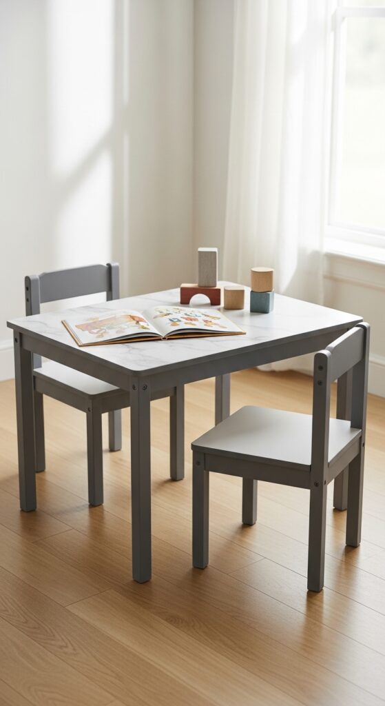 The Lätt table and chairs set is the most affordable IKEA kid’s furniture. While it looks basic in raw wood, it’s a blank canvas. Paint the frames a soft charcoal and use contact paper (like marble or wood grain) on the tabletop. It instantly upgrades the set from “budget” to “boutique.” It’s light enough for kids to move around but sturdy enough for snacks and crafts.