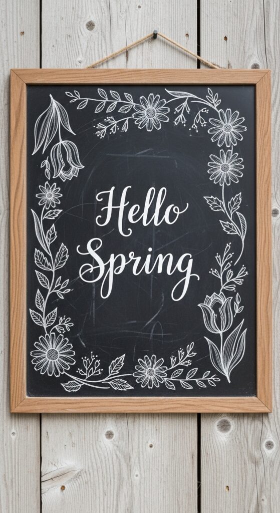 Mount a small chalkboard on the wall of your porch and draw a festive spring scene or write a welcoming message like “Hello Spring!” You can change the message every week to keep things fresh. This interactive element is wonderful for families with kids and adds a playful, artisanal touch to your outdoor decor that is both practical and charming.