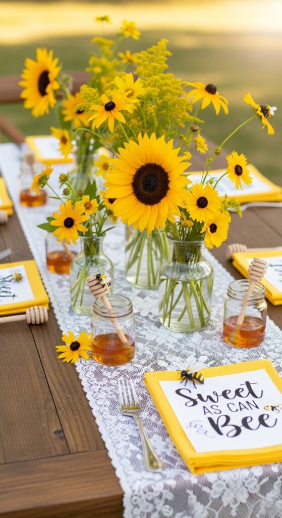 Use honey jars, beehive decor, and yellow wildflowers. This “sweet as can bee” theme is gender-neutral and darling. Incorporate honey-drizzled biscuits into the menu. It’s a warm, inviting aesthetic that makes guests feel right at home.