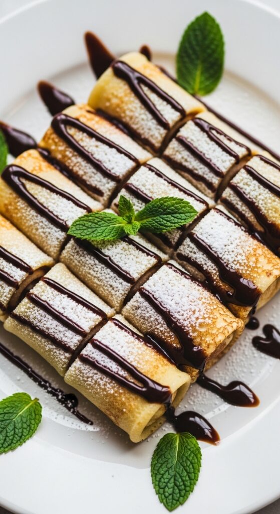 Crepes are elegant and lighter than traditional pancakes. Roll them up with Nutella, strawberries, or lemon curd and dust them with powdered sugar. Arrange them in rows on a white ceramic platter. The delicate texture of the crepes adds a touch of “Parisian cafe” vibes to your living room.