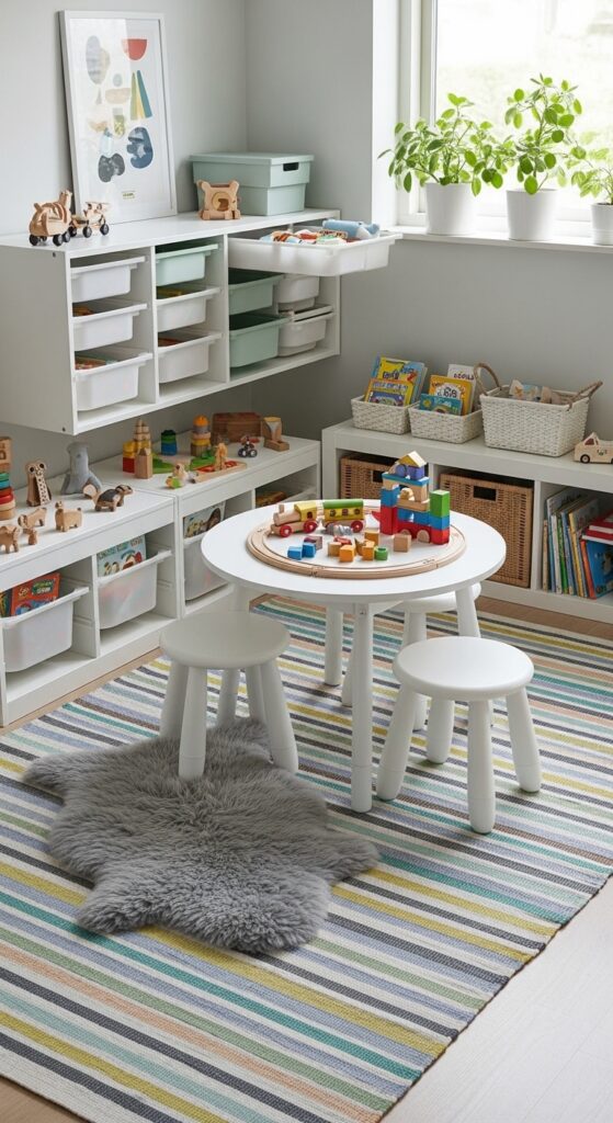 If guests are bringing children, set up a small, stylish play area. You can take cues from 16 best ikea kids playroom ideas to keep it budget-friendly and cute. A few wooden toys and some coloring sheets will keep the little ones busy while the adults chat.
