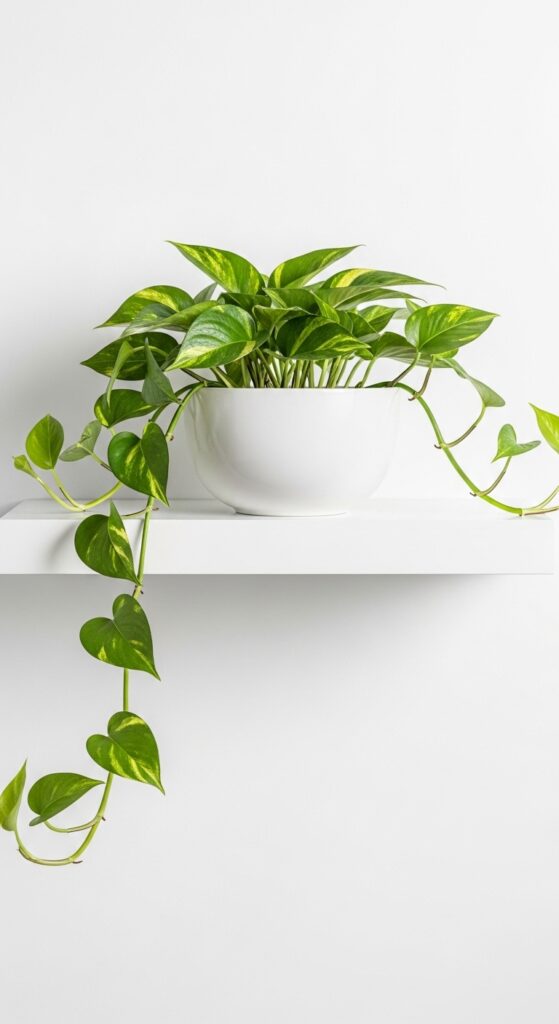 Pothos is the most versatile minimalist plant. For a clean look, keep it trimmed so it stays bushy in a round white bowl-style planter. If you prefer a bit of “wild,” let it trail along a white mantelpiece. The ‘Jade’ Pothos, with its solid dark green leaves, looks particularly striking and “expensive” when housed in a high-gloss white porcelain pot.