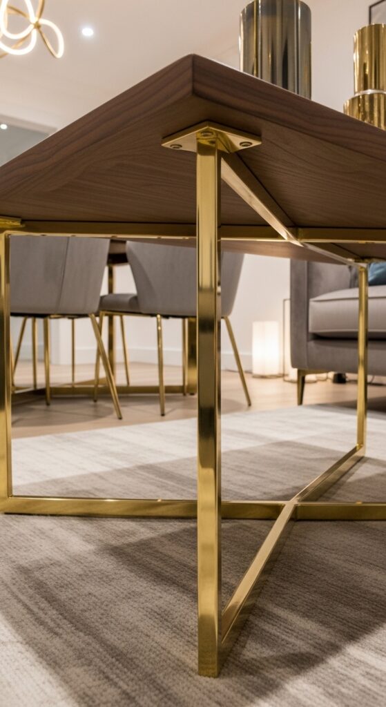 Use metallic finishes like chrome or polished brass as a “bridge” between the two zones. If your living room has a brass-legged coffee table, ensure your dining room chairs or the light fixture also feature brass elements. This repetition of “hardware” creates a sense of high-end continuity. It’s the small, shiny details that the eye catches when scanning a room. In Neo Deco design, these metallic glints act as a common language that speaks to both the comfort of the living room and the formality of the dining room, tying the two together beautifully.